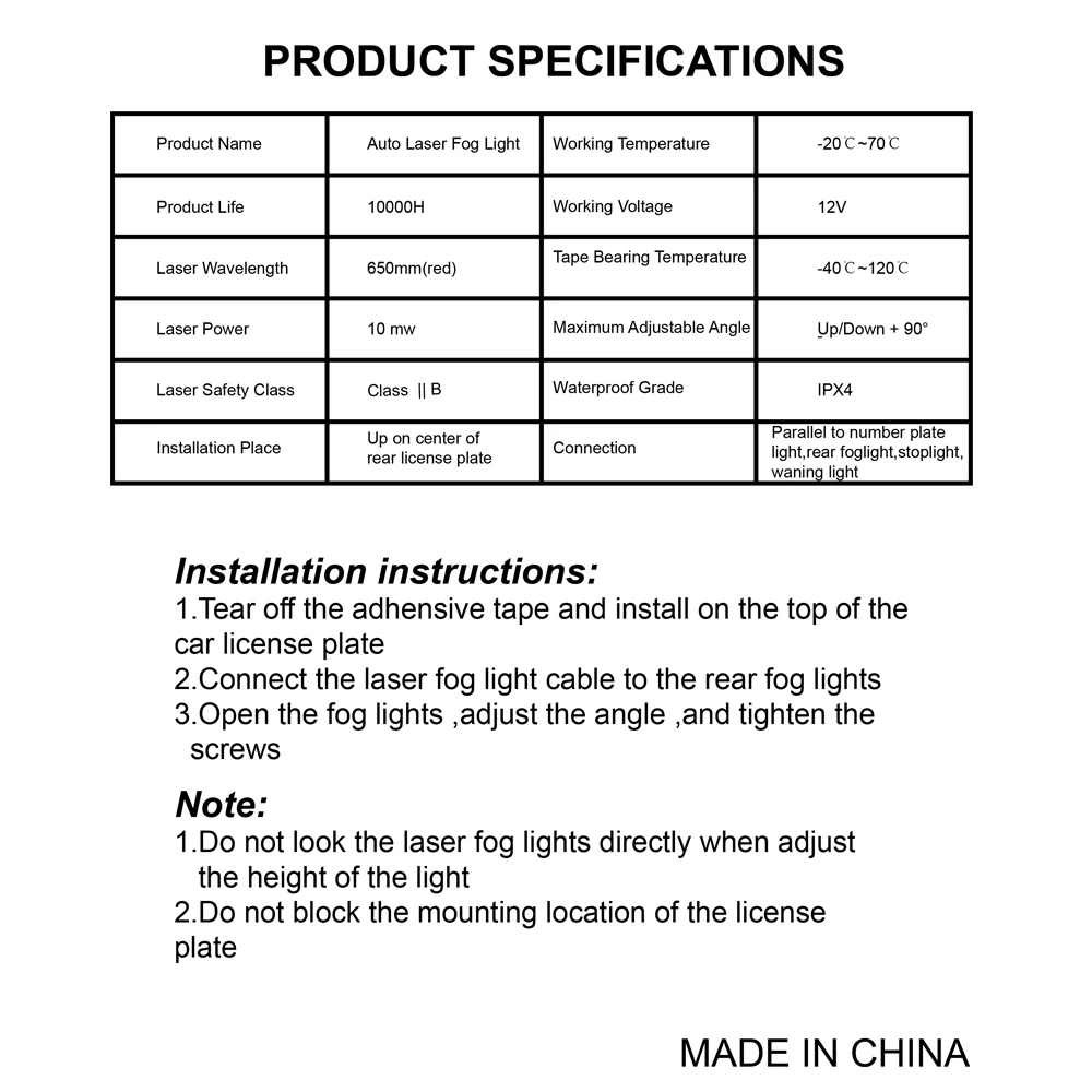 Использование: противотуманный светильник, лазерная противотуманная фара, Предупреждение ющий светильник