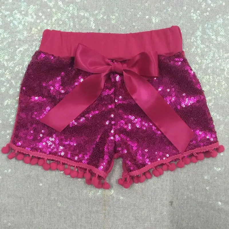 Шорты с золотыми пайетками для девочек, летняя блестящая одежда для маленьких девочек, детская блестящая одежда для первого дня рождения, шорты с помпонами для малышей