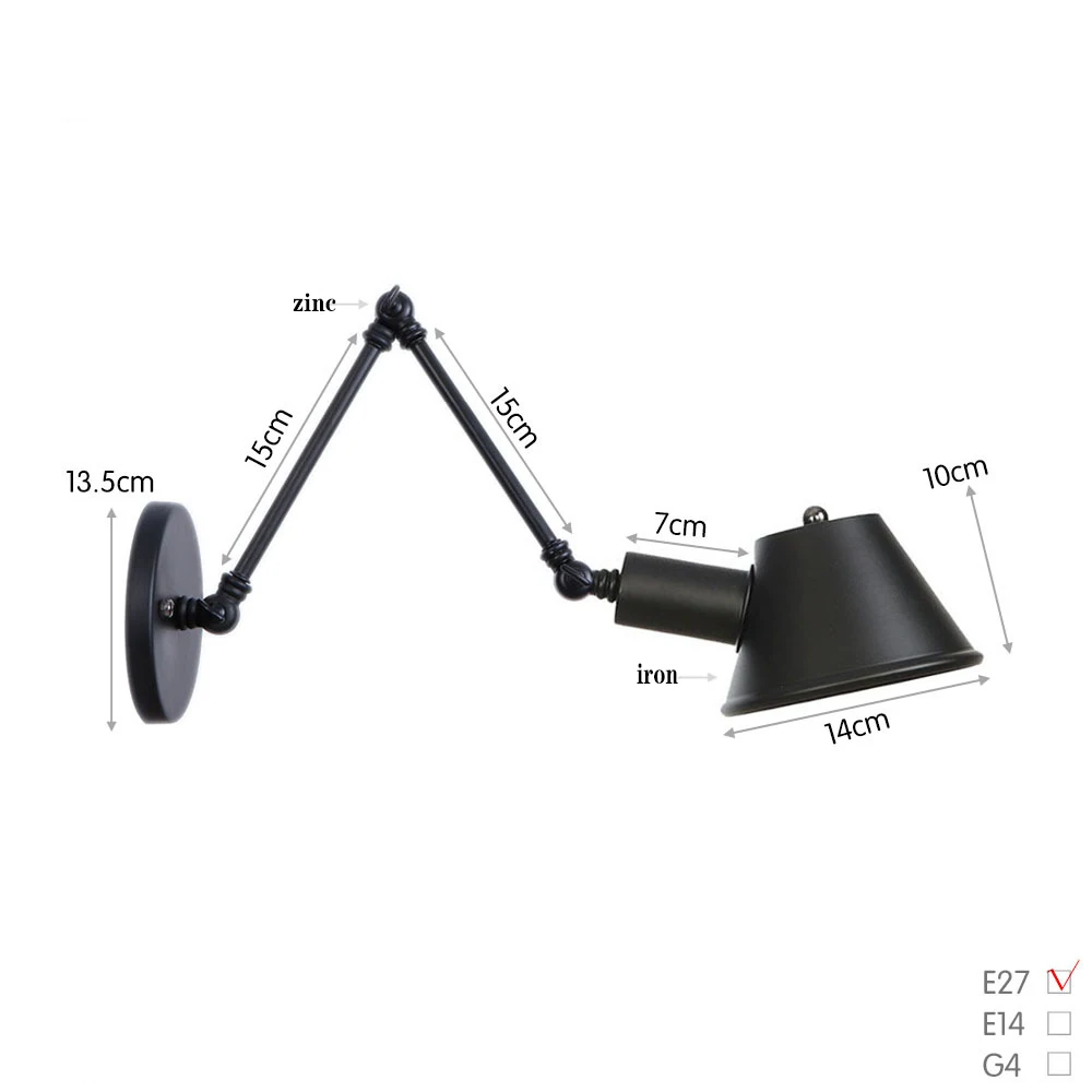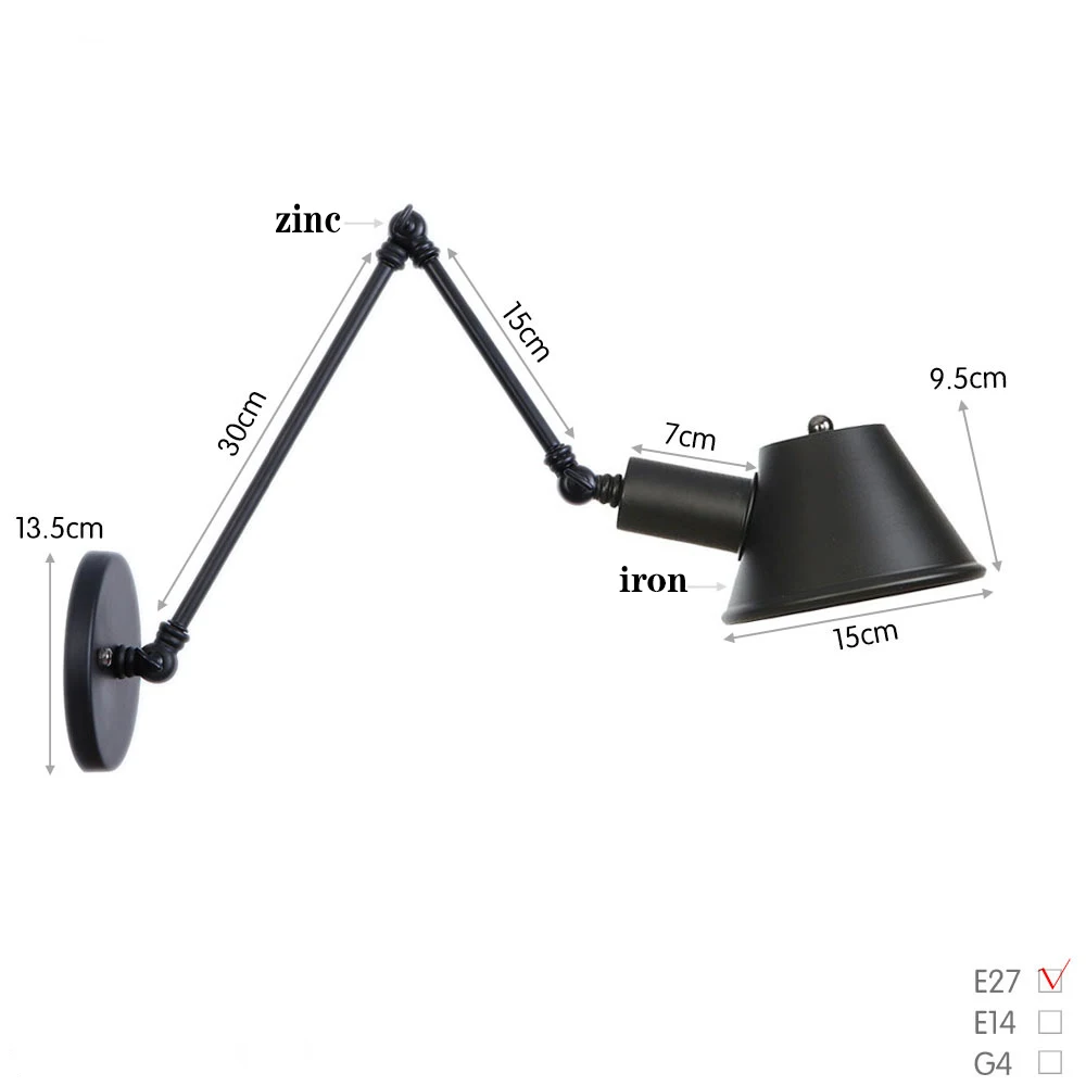 Промышленные ретро настенные светильники длинные руки винтажный бра настенный светильник железный с для спальни исследование украшение дома черный AC 110V 220V