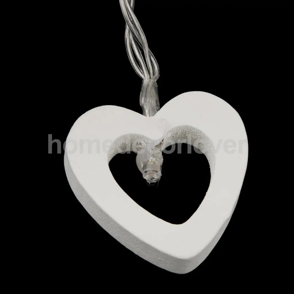 10 деревянных ламп с орнаментом в форме сердца с теплым белым светом
