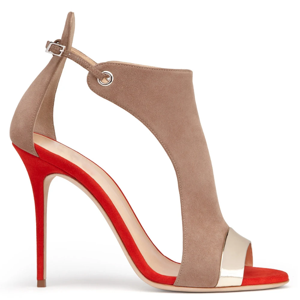 Модные женские босоножки на высоком каблуке с открытым носком; Летняя женская обувь на каблуке с ремешком на щиколотке; Цвет бежевый, коричневый; Обувь на каблуке; Большие размеры