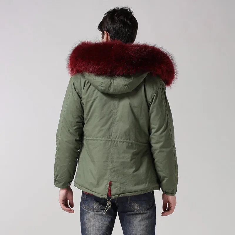 Товары: | 2016 большой воротник из меха енота винно-красный мех внутри натуральный мех пальто с капюшоном зимняя мужская меховая куртка | |||
