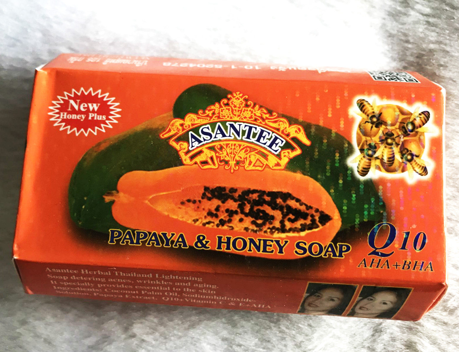 Состав:Кокосовое пальмовое масло, раствор гидроксида натрия, экстракт папайи (Kojic), Q10, витамин С, Аха, коллаген
