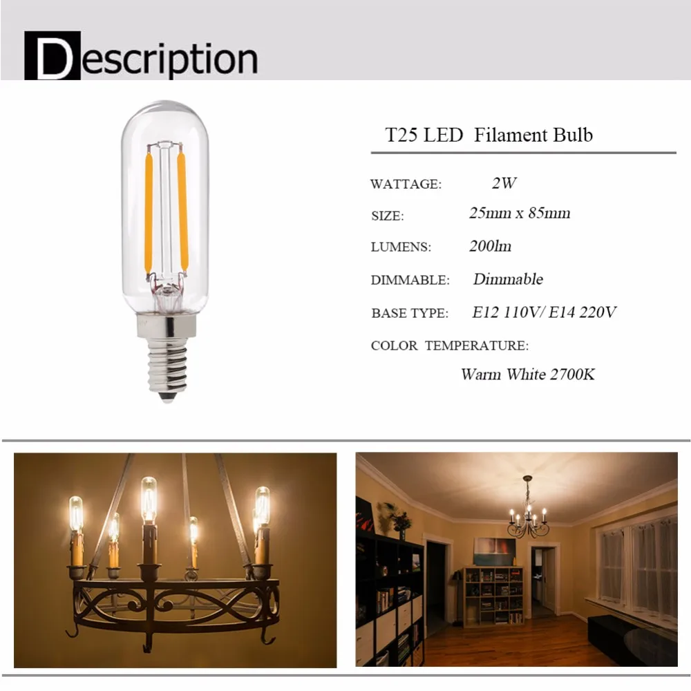 Модель:C7 T20 T20 Длинная нить T25 трубчатая диммируемая лампа