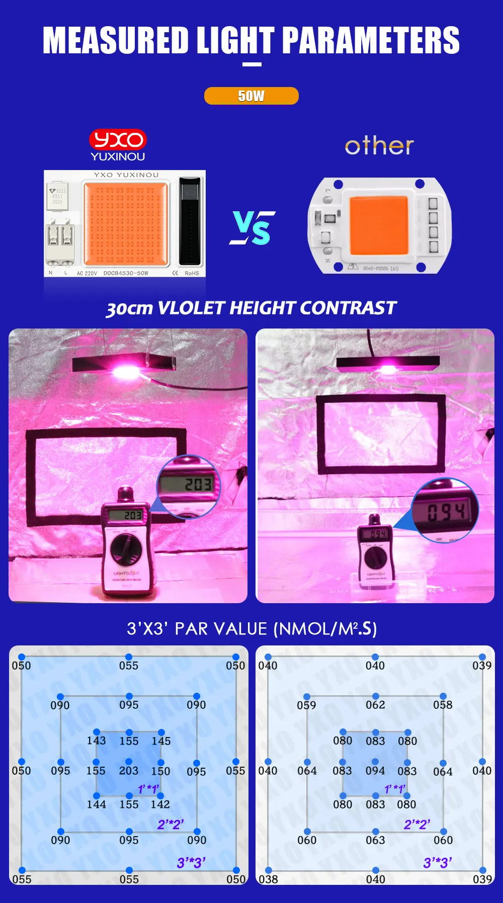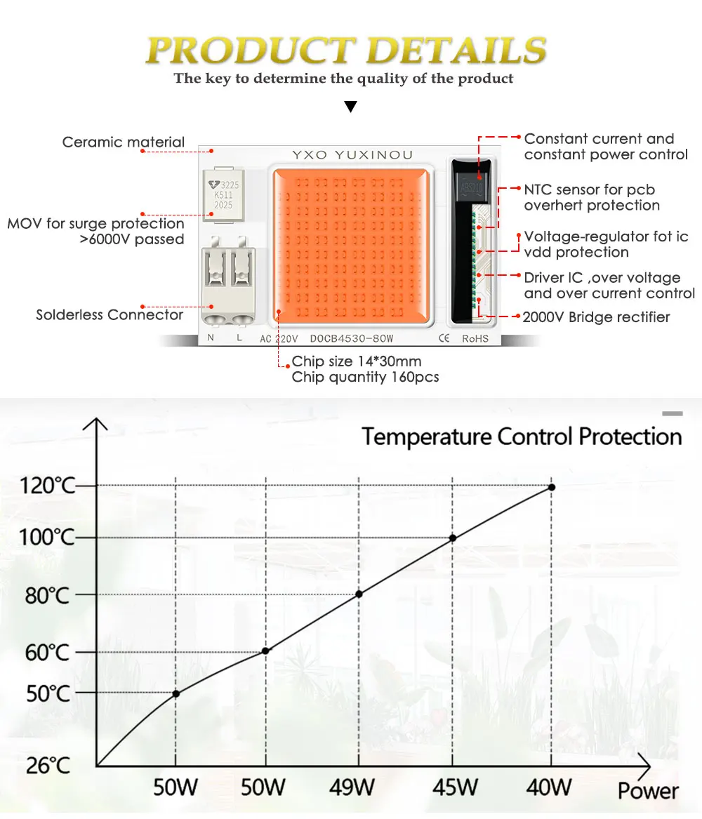 2. Цвет:Полный спектр3. Цветовая температура:380-780nm/3500k/450-455nm/6000k4. Мощность: 20 Вт/30 Вт/50 Вт5. Входное напряжение: 220-277 В6, Размер:75x40x1.6 мм7. Материал корпуса: алюминий9.Диммируемая:Да/Нет (он может работать с диммером, он также может работать без диммера)10. Срок службы от источника энергии:> 50000 часов11. Угол освещения: 12012. Гарантия: 3 года13. Почему наш светодиодный чип лучше, чем другой чип, потому что это новая технология DOB, есть 6 функций для защиты светодиодного чипа длительный срок службы.A1:MOV для защиты от перенапряжения> 4000 в прошелA2:1000V Мостовой выпрямительA3: постоянный ток и постоянный контроль мощностиA4: Датчик NTC для защиты от перегрева pcbA5: регулятор напряжения для ic vdd protectioA6: Драйвер IC, перенапряжение и контроль над токомA7: он может использовать светодиодный диммер или диммер SCR для затемненияПримечание:Для Охлаждения необходим алюминиевый радиатор, не используйте светильник без радиатора.Внимание, пожалуйста:Мы отправим лампу с сильной посылка, но иногда это будет иметь некоторые проблемы,Если он был поврежден при отправке, пожалуйста, выполните следующие действия:1. Отправьте нам сообщение и сообщите нам, что не так с лампой.2. Также прикрепляйте фотографии или, возможно, отправьте нам видео теста.Двумя шагами, мы решим проект вам.Пожалуйста,НеДелайте, когда лампа была повреждена:1. Открытый спор2. Дайте нам негативные отзывы.
