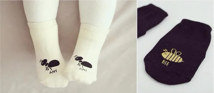 Милые детские носки-тапочки с изображением пчелы муравья, 2020 г. Носки хлопковые для девочек, Нескользящие устойчивые носки 2 цвета, размеры S/M, От 0 до 4 лет