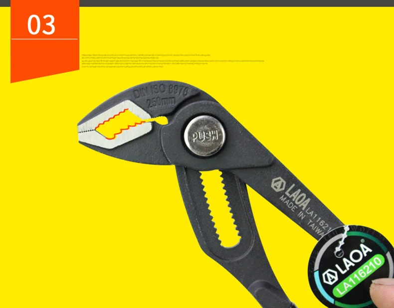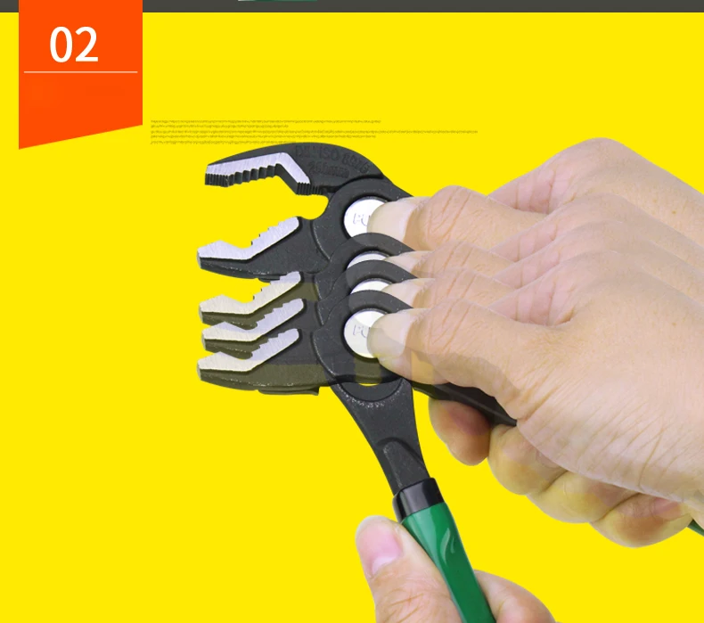 ① Диапазон зажима: круглый, шестигранный, квадратный (<50 мм) ② Кнопка быстрой регулировки ③Brand логотип ④ CR-MO, твердость HRC58 ⑤ Многозубная конструкция, точная регулировка ⑥Comfortable ручка
