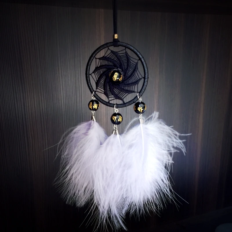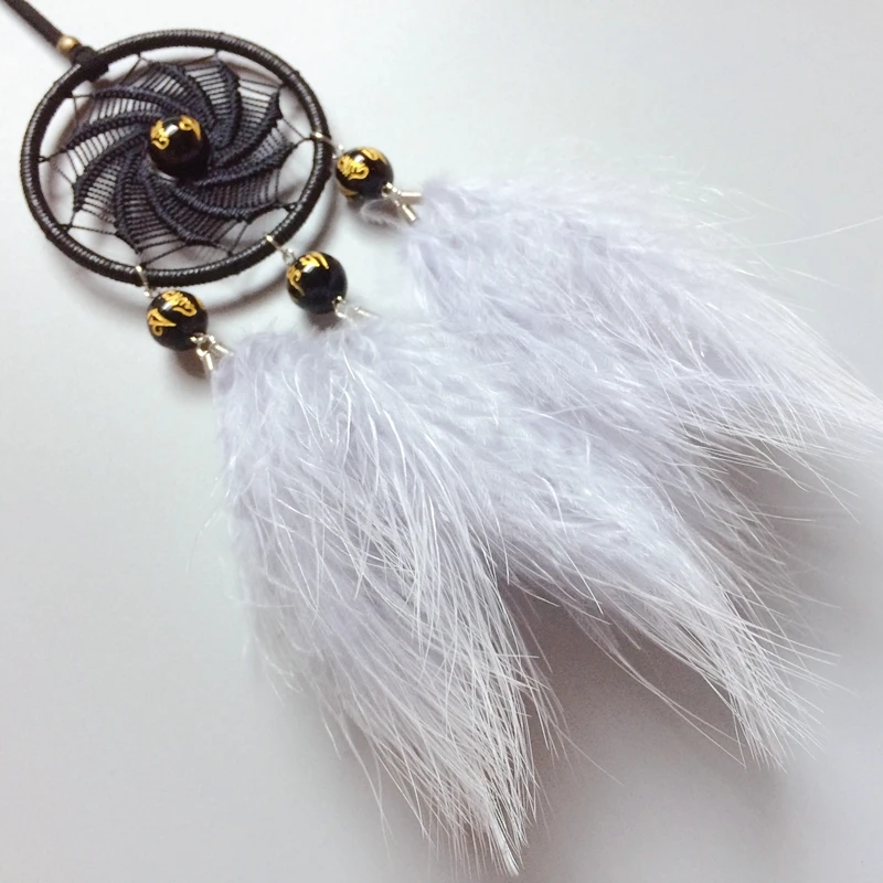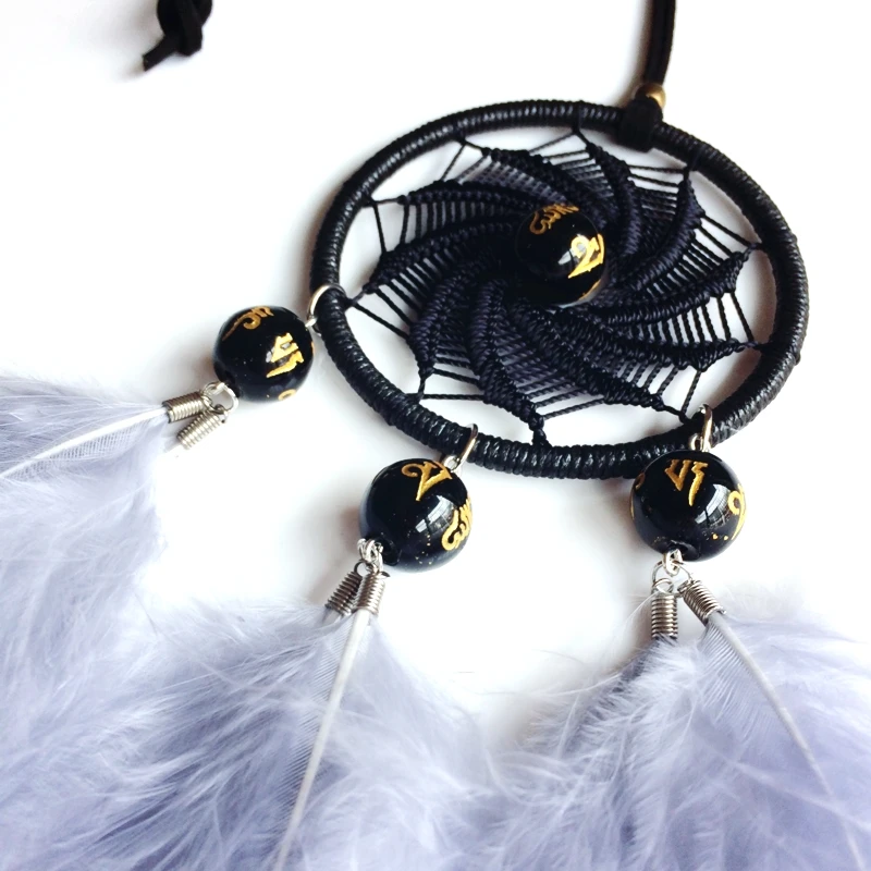 Маленький Ловец снов автомобиля Висячие ловушки снов украшение Серое Перо счастливый камень бусы ручной работы вихревой формы вязание