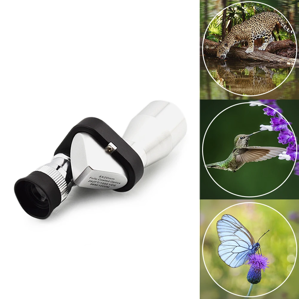 Мини Карманный 8x20 HD угловой оптический окуляр с монокулярным телескопом для научного наблюдения за птицами, дикой природы