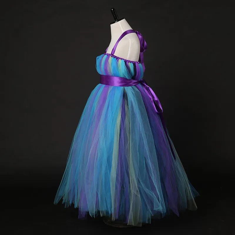 Новые атласные ленты Павлин платье-пачка костюм для девушки для хеллоуина для детей Свадьба День Рождения фотография вечерние элегантные тюлевые платья для девочек