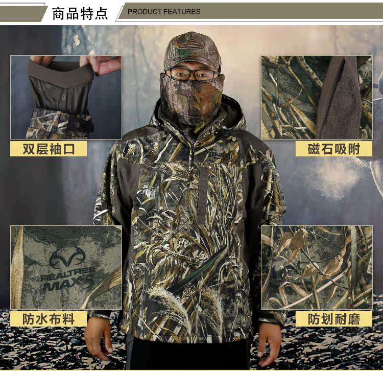 Охотничья куртка с камуфляжным принтом теплая и ветрозащитная для кемпинга