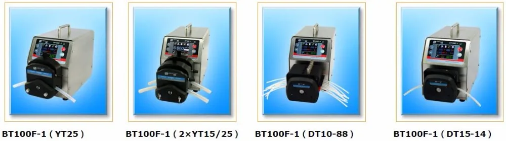 BT100F-1, применимые головки насоса и трубки, параметры потока