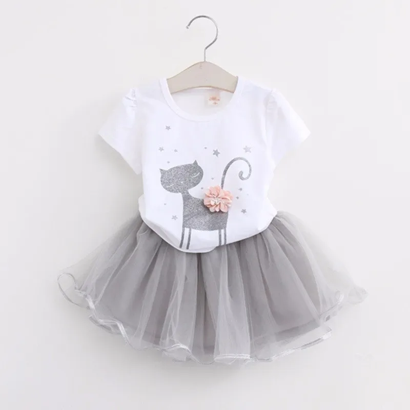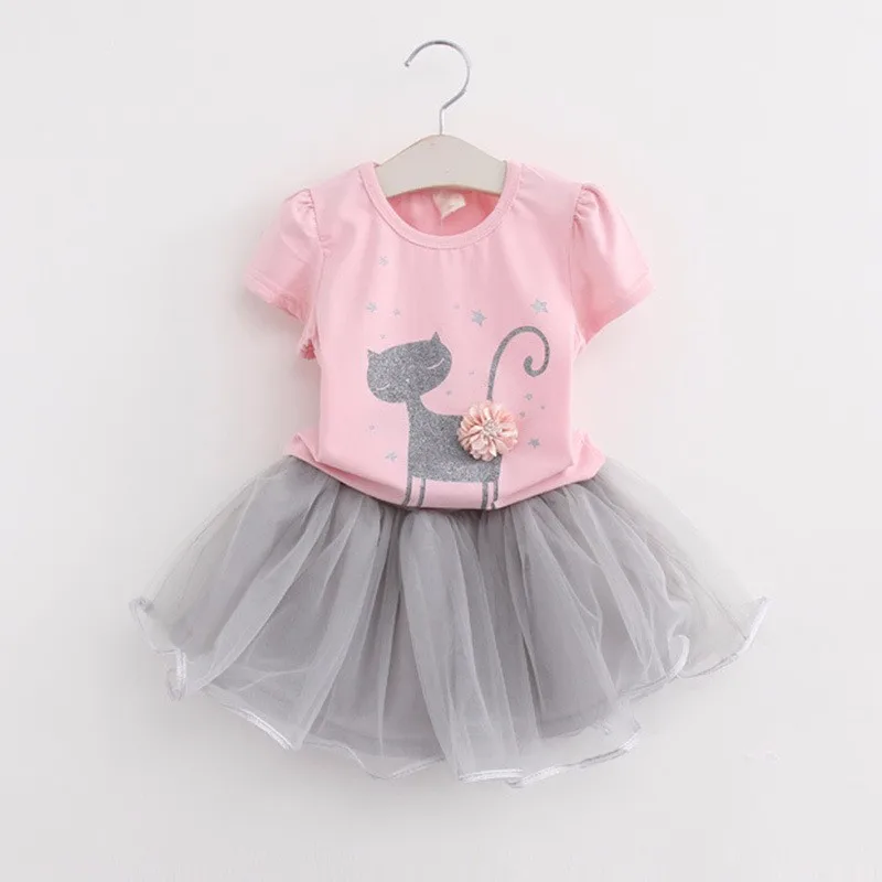 Комплект одежды; Милая толстовка с рисунком из мультфильма; Футболка + газовая юбка; Юбка с пятью точками; От 2 до 6 лет девочек; Модная качественная детская одежда