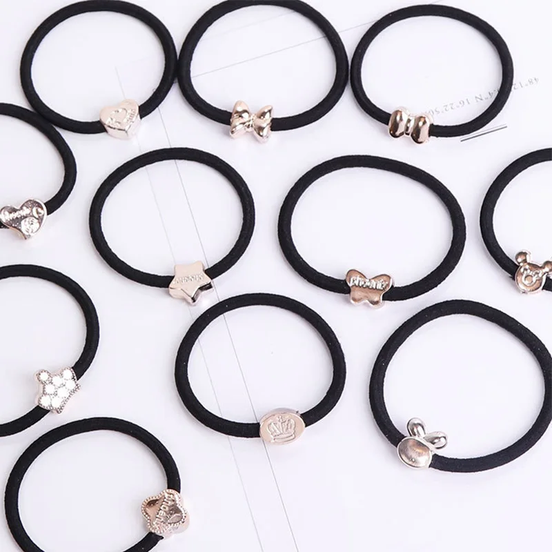 10 шт./лот новые женские элегантные черные геометрические эластичные резинки для волос сладкая резинка для конского хвоста повязка на голову модные аксессуары для волос