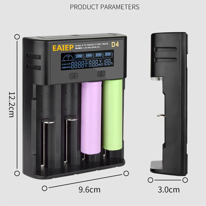 Интеллектуальное зарядное устройство EAIEP D4, измерительная емкость, время, напряжение, процент,