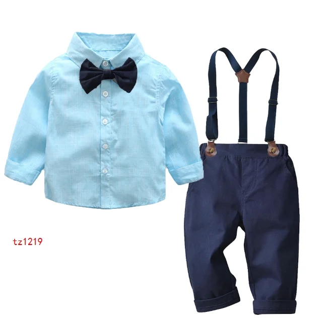 2019 модная одежда с длинными рукавами для маленьких мальчиков, костюм джентльмена из 2 предметов: Топ + штаны, комплект детской одежды с галстуком для новорожденных, детская одежда