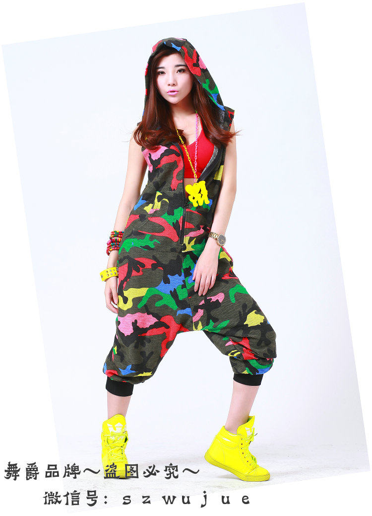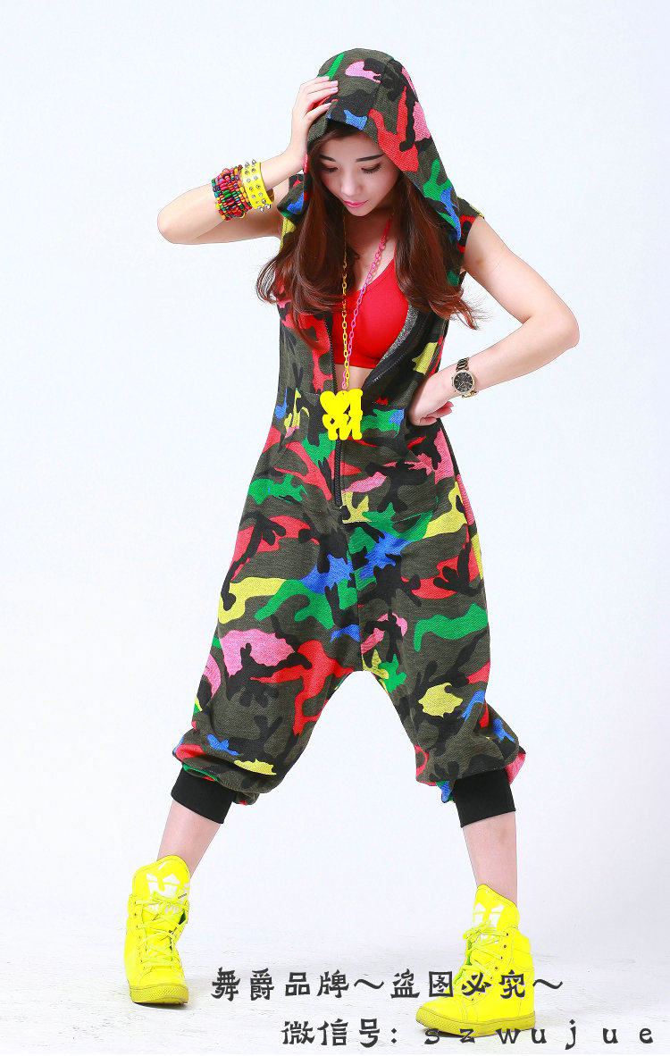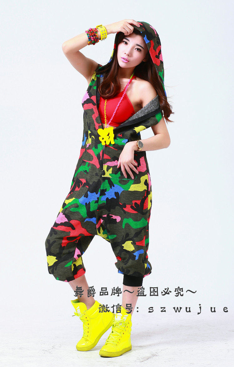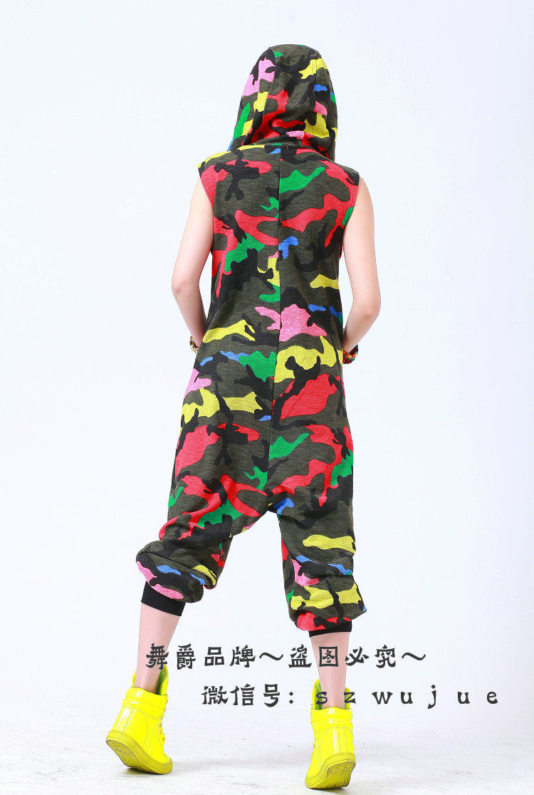 Костюм для танцев в стиле хип-хоп, камуфляжный Свободный комбинезон, спортивные цельные штаны, шаровары, комбинезон без рукавов с капюшоном
