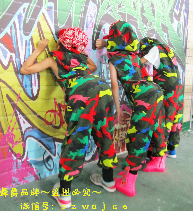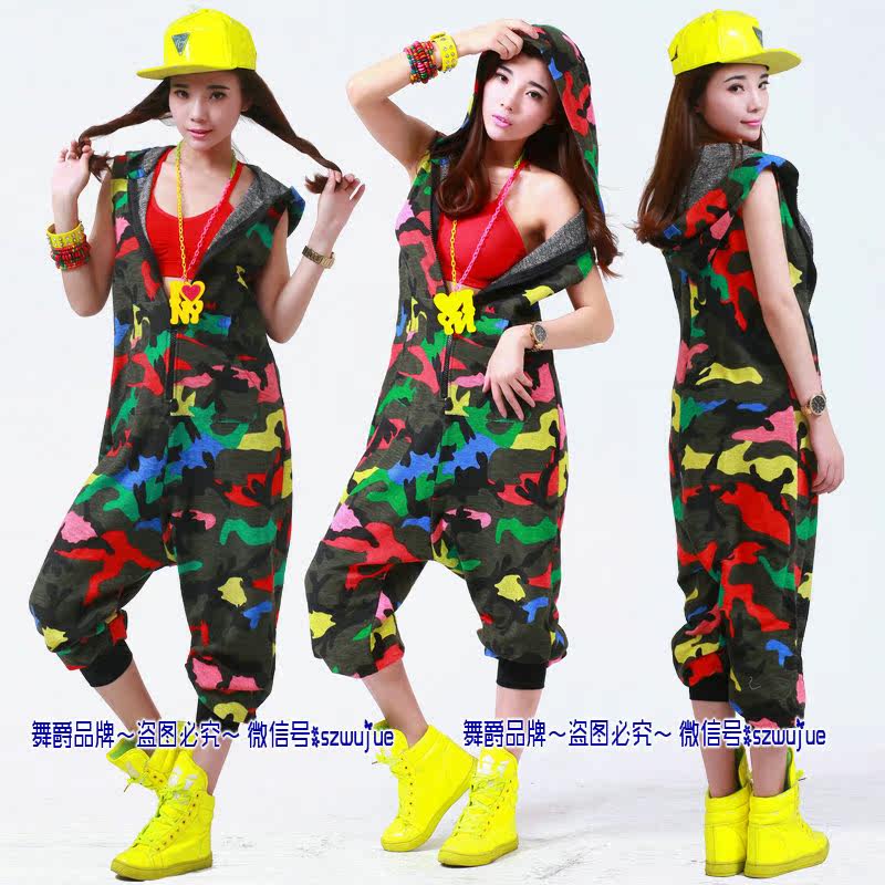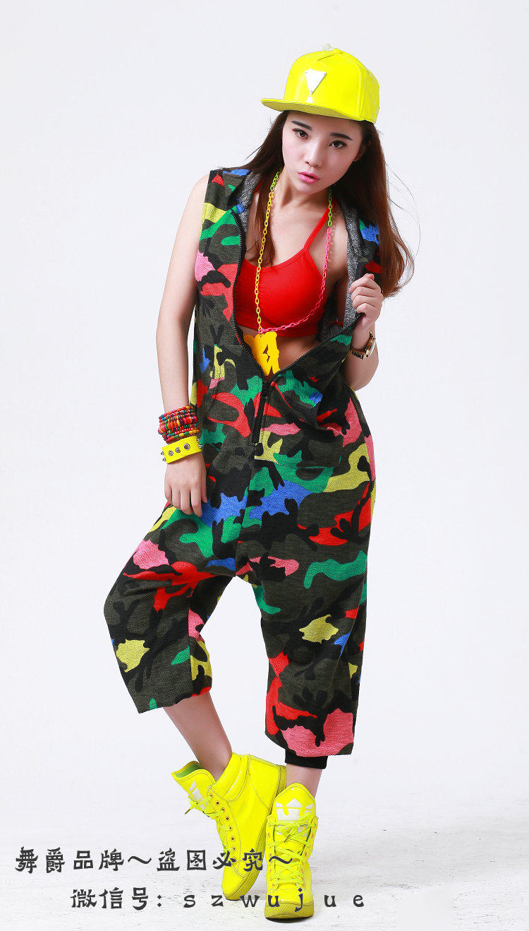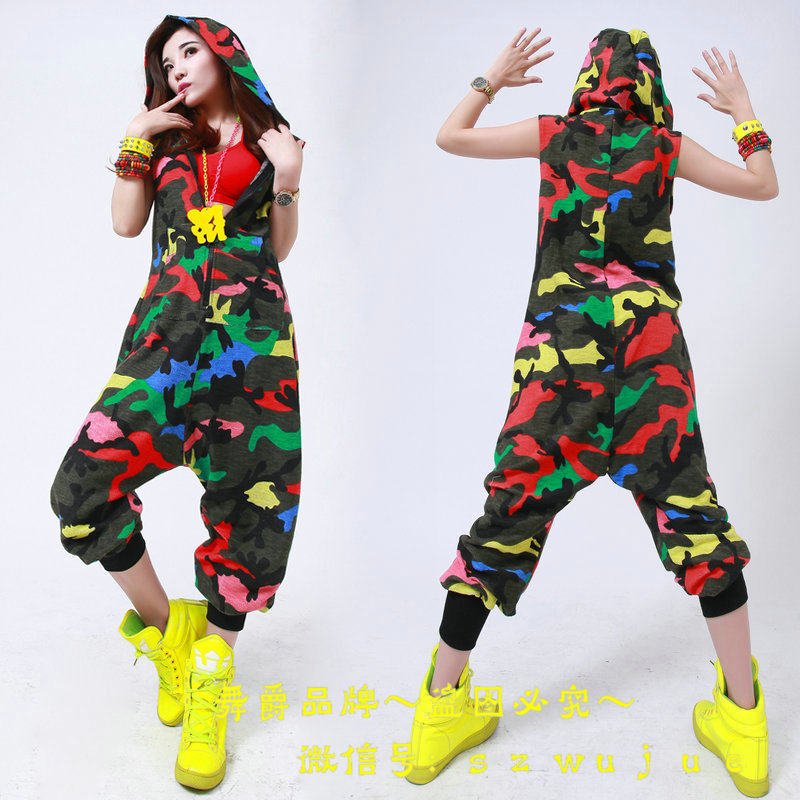 Костюм для танцев в стиле хип-хоп, камуфляжный Свободный комбинезон, спортивные цельные штаны, шаровары, комбинезон без рукавов с капюшоном