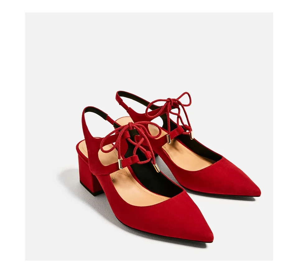 Летние красные женские туфли-лодочки на среднем каблуке 6 см