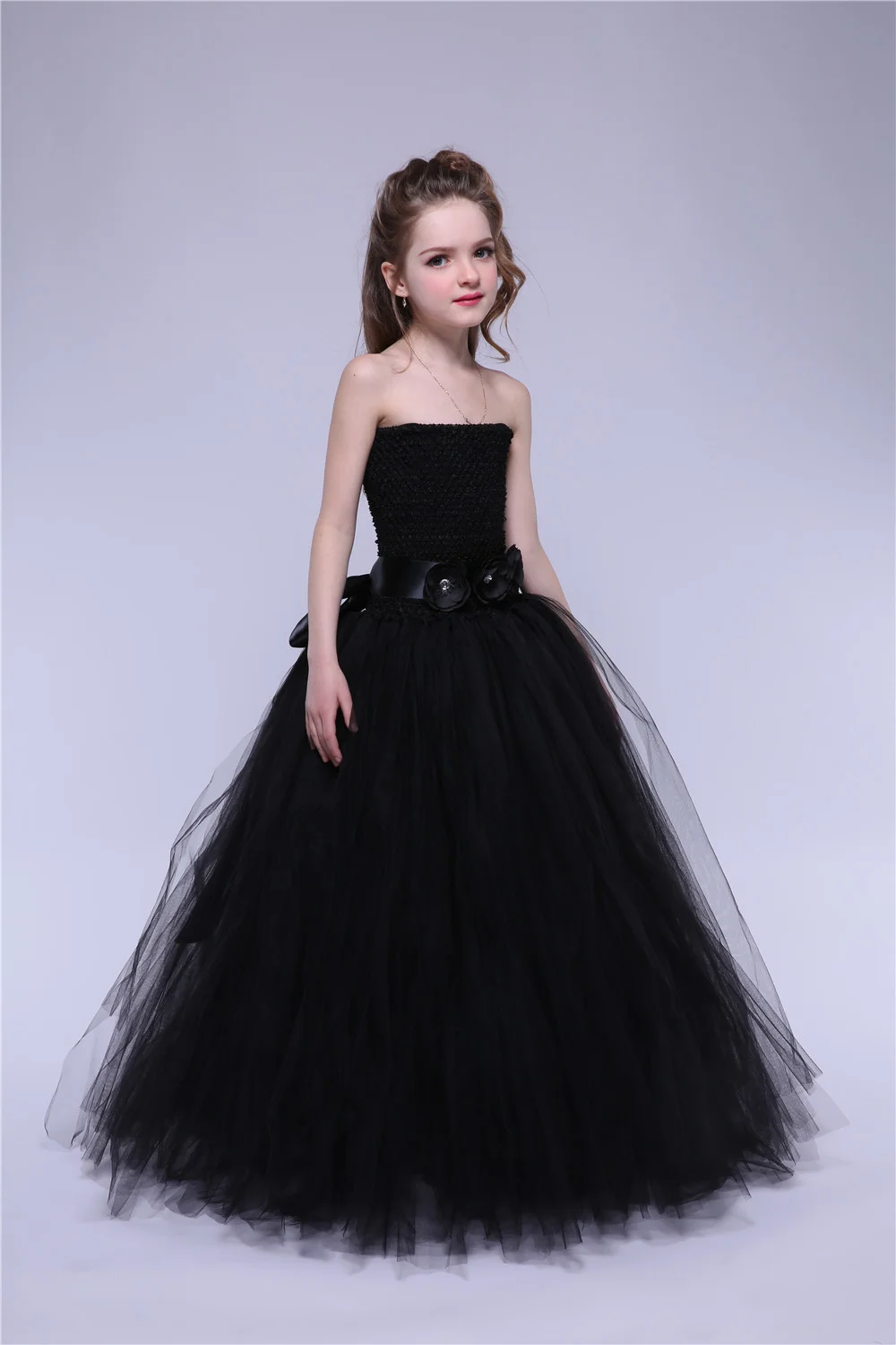 Платье из тюля с цветочным узором для девочек черное платье-пачка для маленьких детей вечерние бальные платья принцессы, Детские праздничные платья на день рождения, костюм на Хэллоуин
