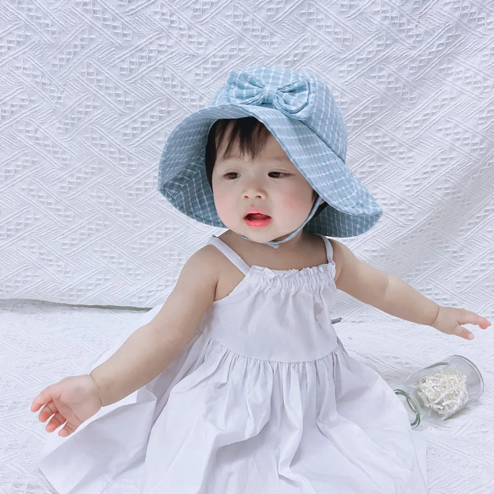 Модная сетчатая Детская шляпа с бантом, летняя Солнцезащитная шляпа, осенние детские шапки для девушки, дети, ребенок, Пляжная Солнцезащитная шапка
