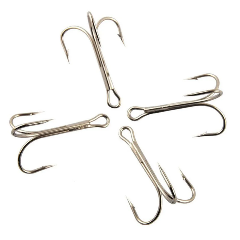 100 шт./лот рыболовные крючки Серебристые высокоуглеродистые Стальные рыболовные крючки острые тройные Крючки для ловли карпа