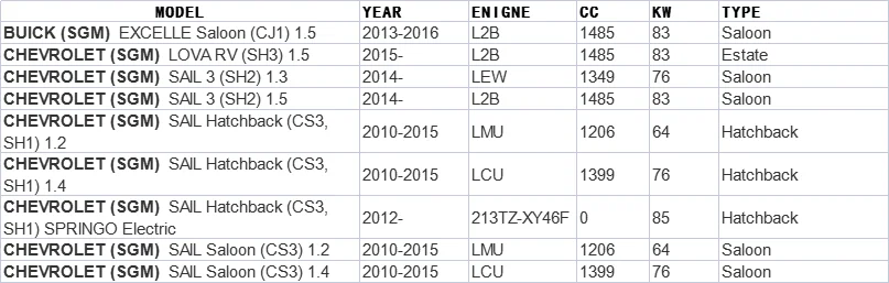 Подходящая модель транспортного средства: