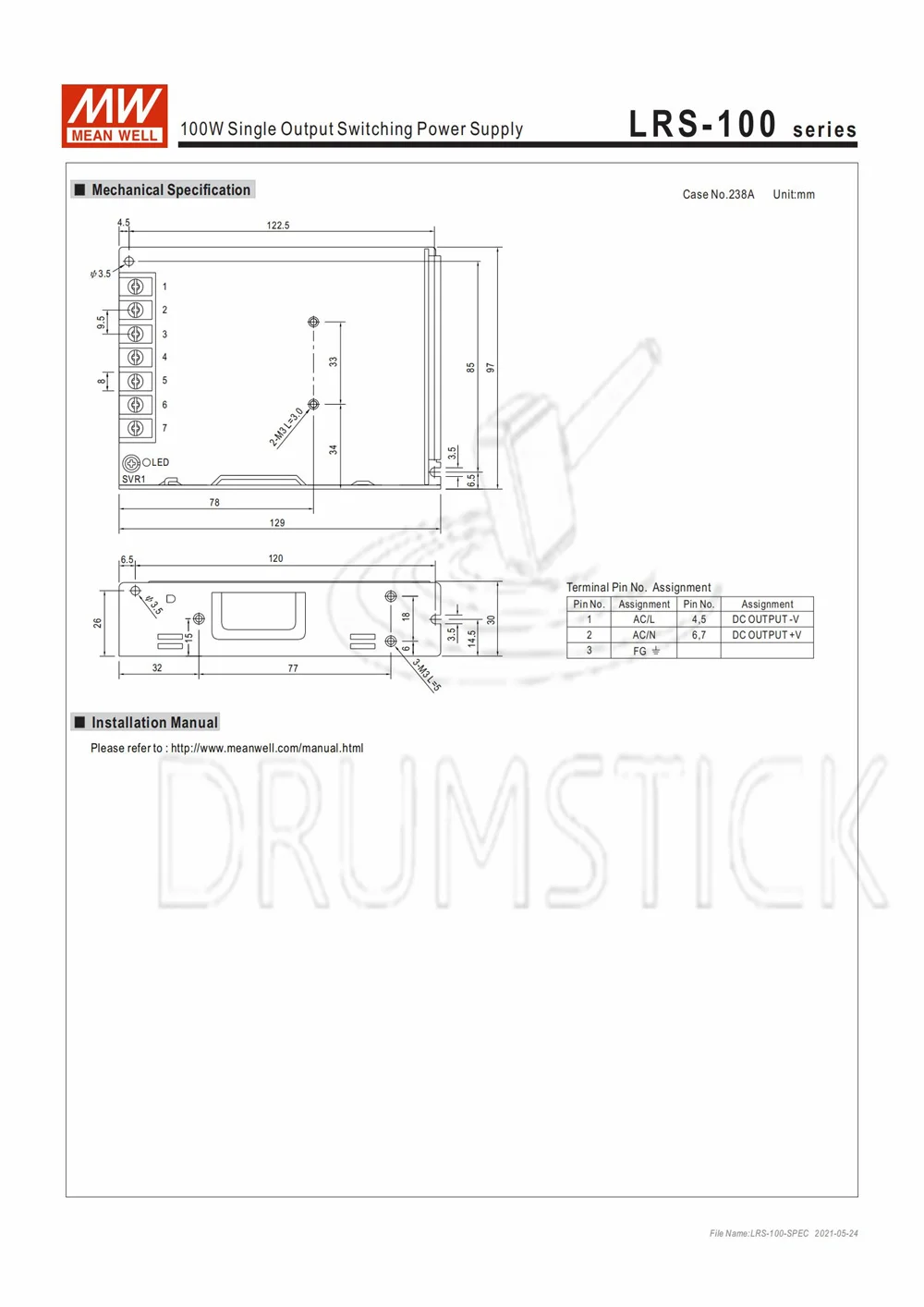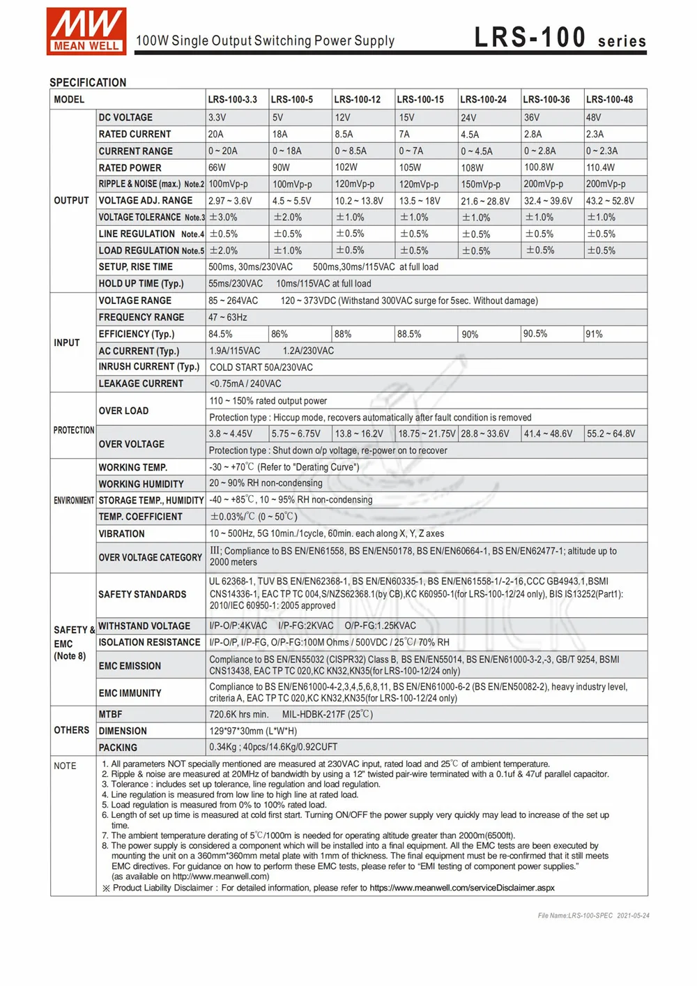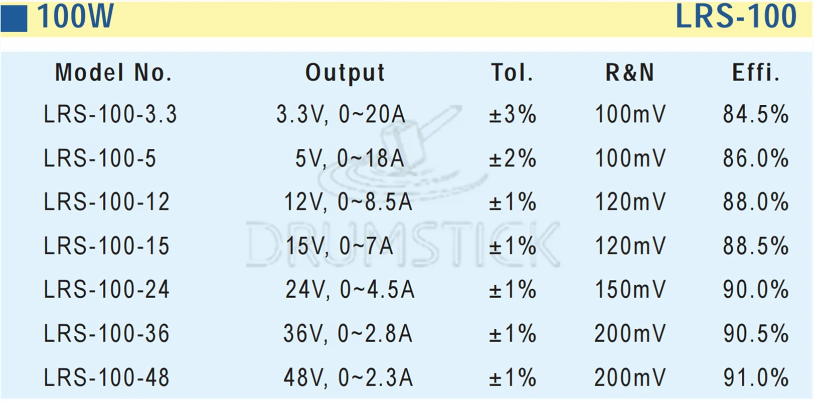 MEAN WELL Enclosed Type LRS-100 Non-PFC LRS series 100W Single Output Switching Power Supply