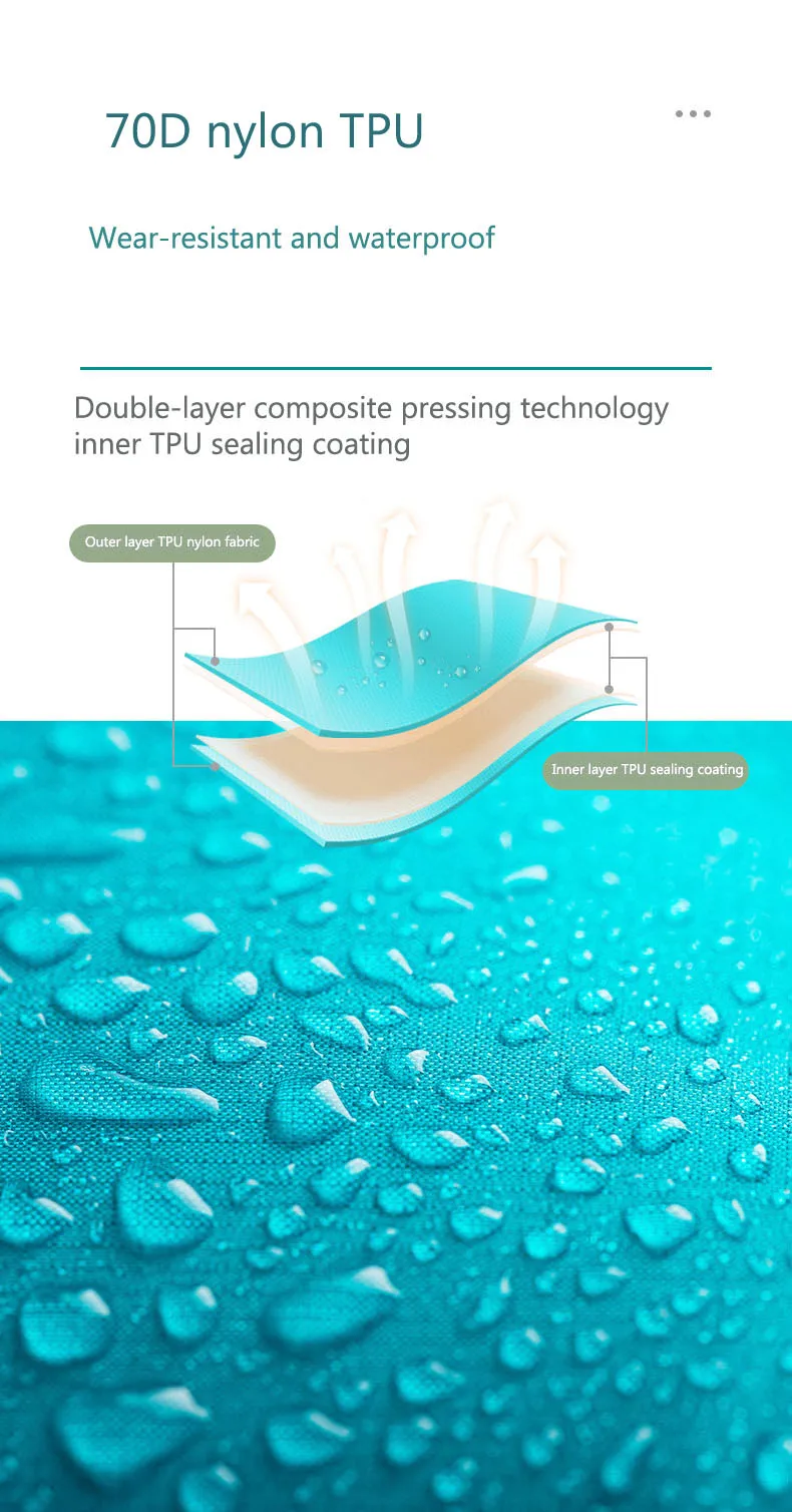 Износостойкий и водонепроницаемый Двухслойная композитная технология прессования, внутреннее термопластичное уплотнительное покрытие Внешний слой ТПУ нейлоновая ткань внутренний слой ТПУ уплотнительное покрытие