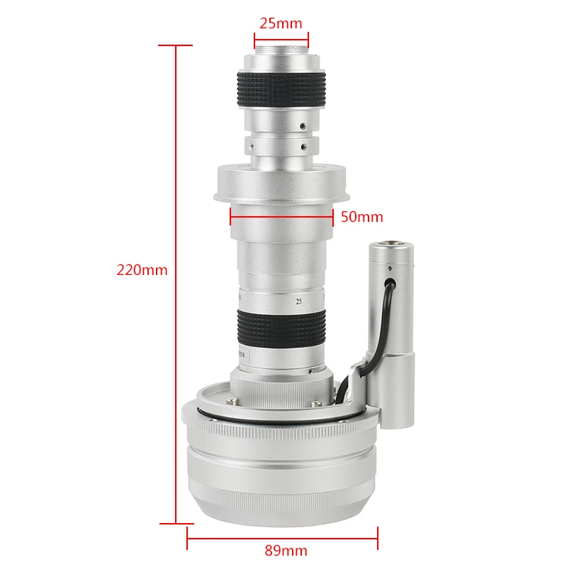 Увеличение всей системы может быть улучшено до 50X ~ 300X с 1 CCD камерой или улучшено до 25X ~ 150X с 0.5X