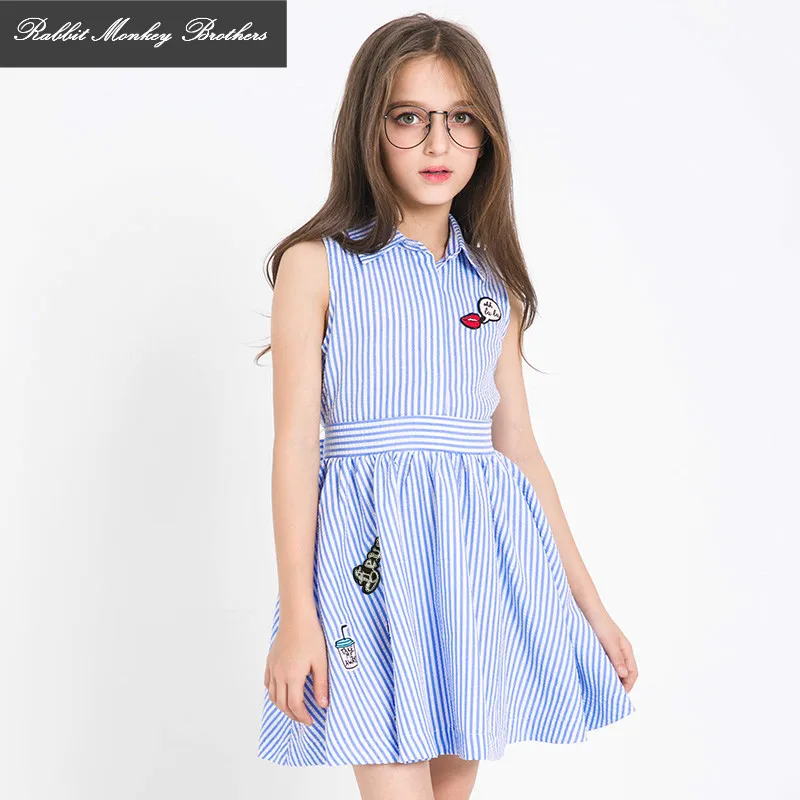 Подростковое платье для девочек 2017 Детское платье принцессы модное платье в полоску для девочек 5 6 7 8 10 11 12 13 15 лет