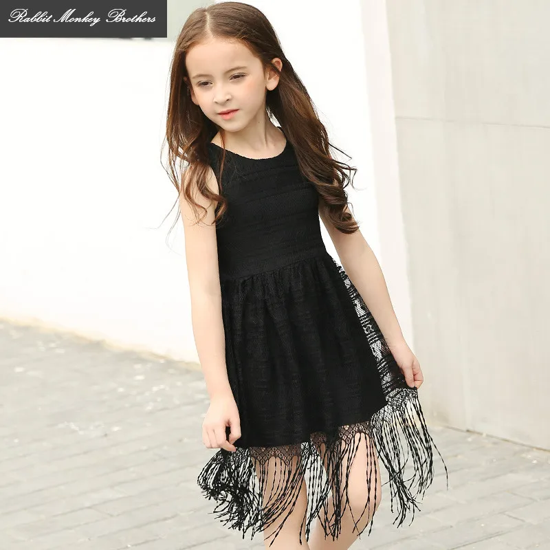 Rmbkids детские черные летние платья девочки европейский и американский стиль повседневные кисточки принцесса жилет платье для 5 6 10 15 для девочек-подростков