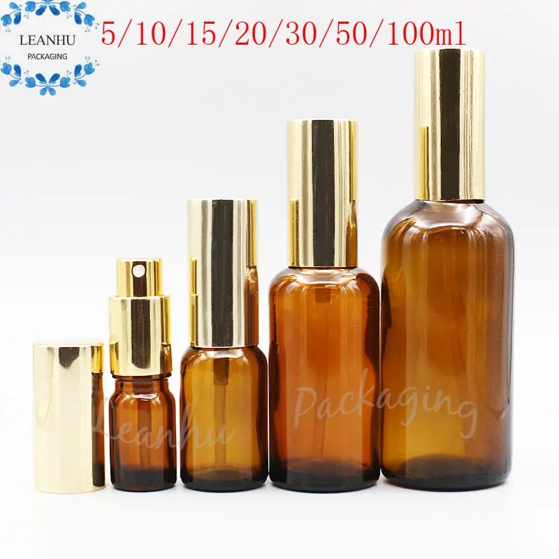 Коричневые стеклянные флаконы духов с золотым спреем, спрей для макияжа, пустые косметические контейнеры, DIY бутылка эфирного масла для ухода за кожей