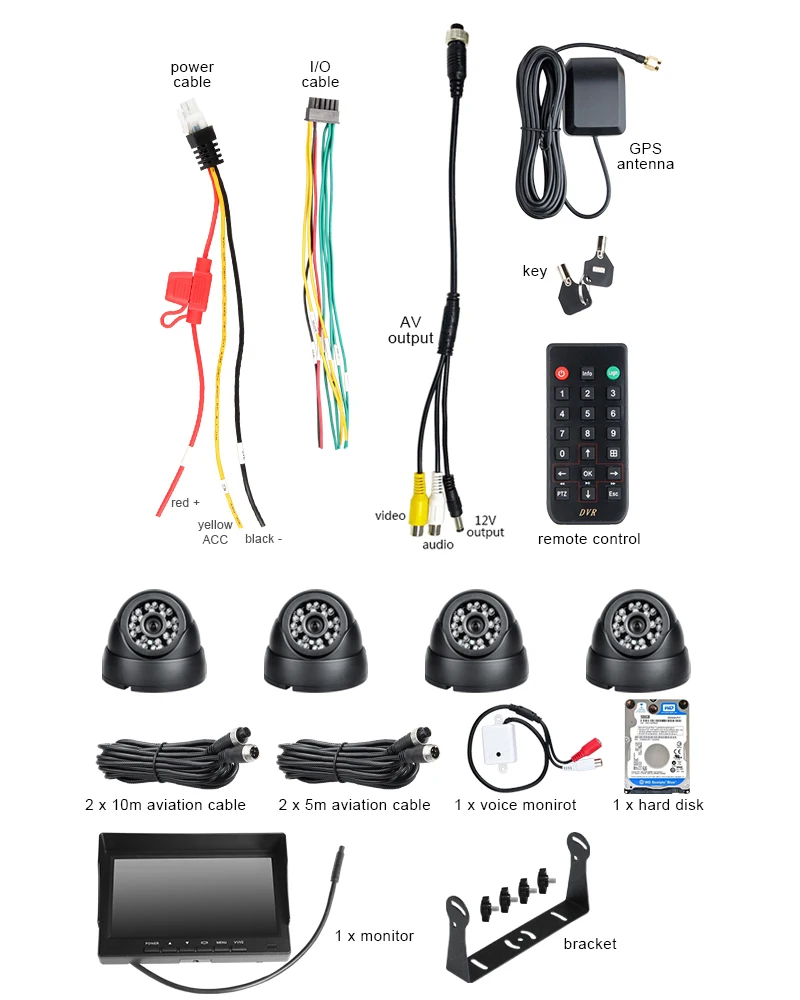 7-дюймовый автомобильный монитор Vga + DC 12В-24В автомобильный HDD GPS Мобильный Dvr с I/O сигнализацией циклическая запись + 4 шт. 2.0мп внутренний Dom Carmera