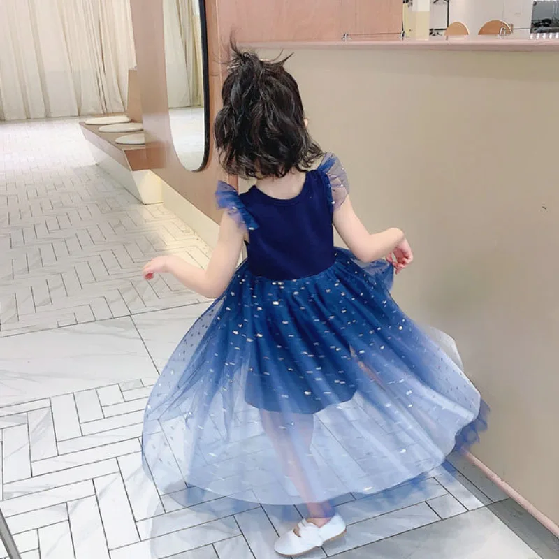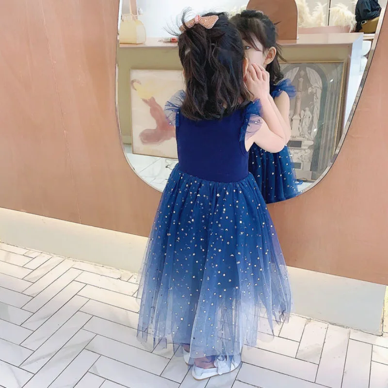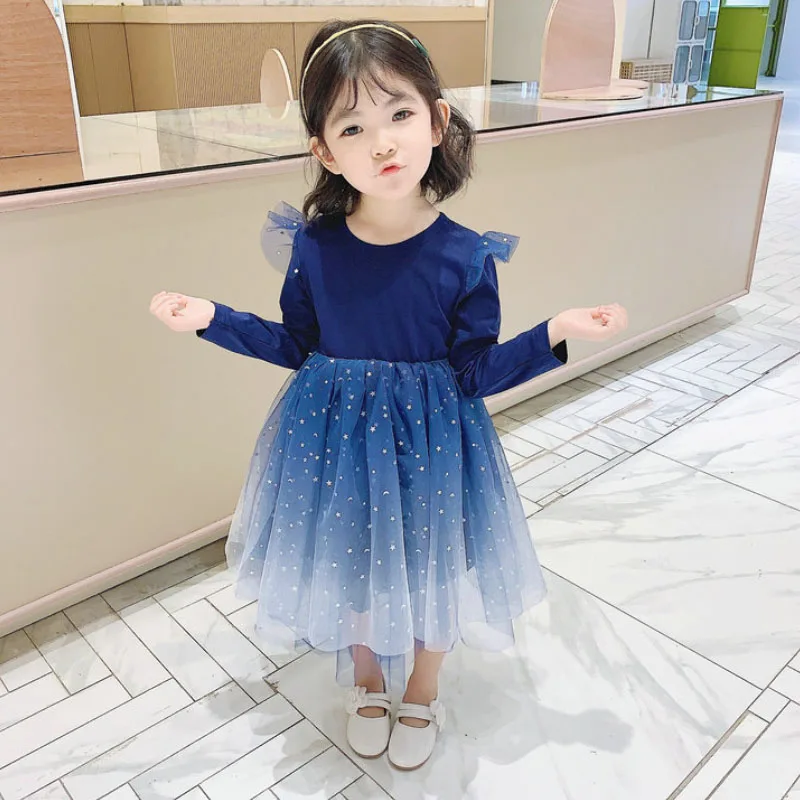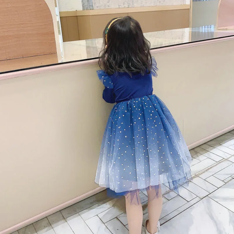 Платье для девочек; Милое модное Повседневное платье принцессы с блестками и звездным небом; От 2 до 7 лет Качественная детская одежда