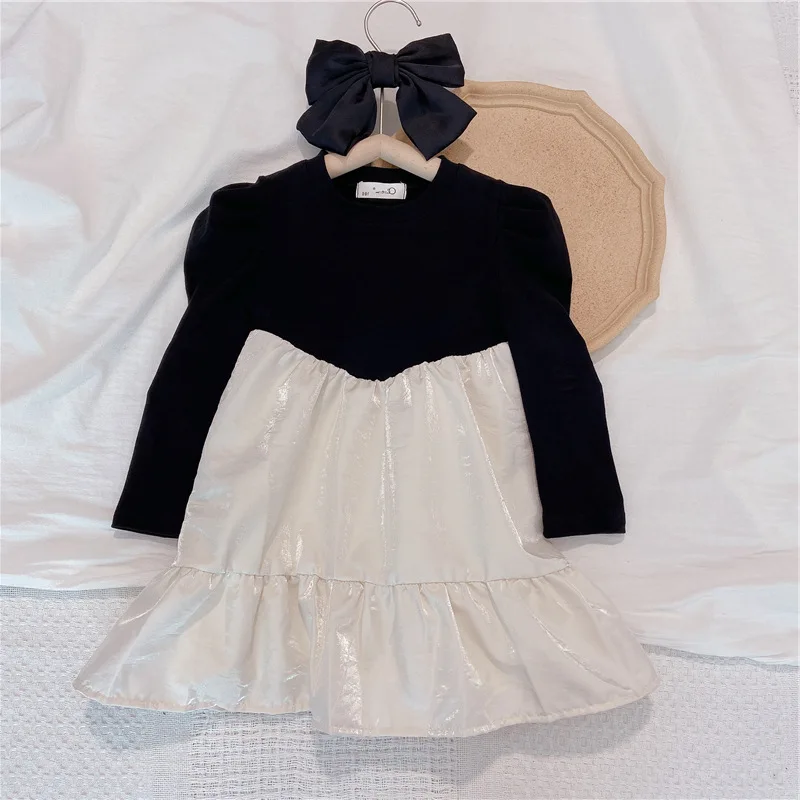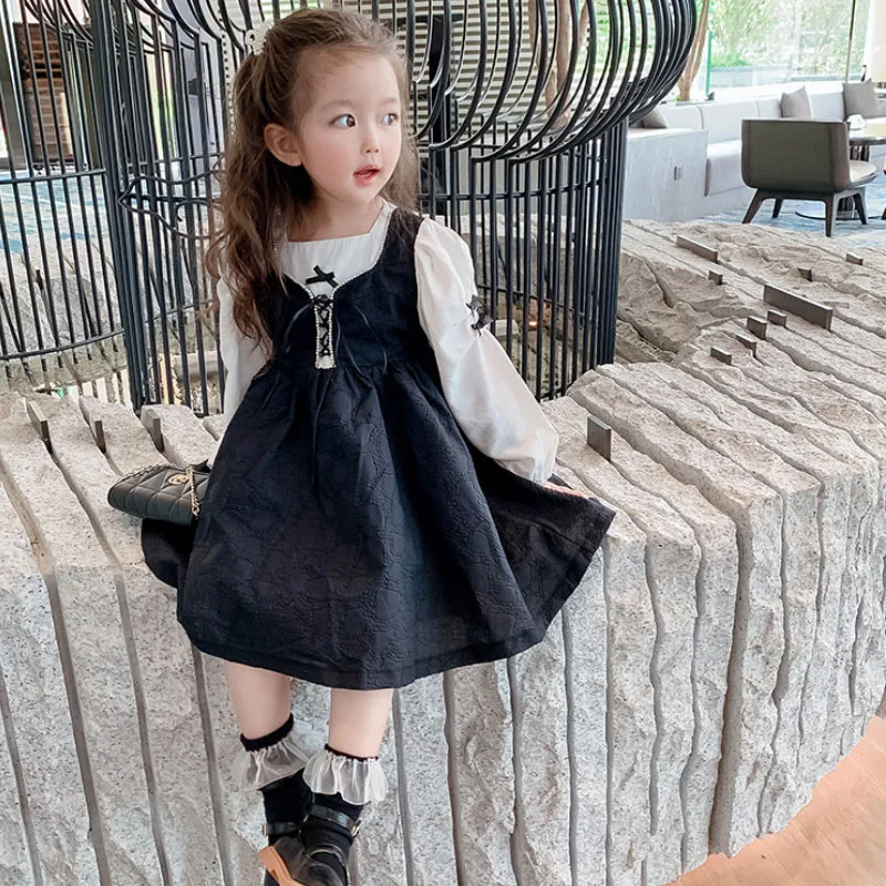 Платье для девочек, модные Универсальные платья принцессы из двух предметов с бантом, подходящие по цвету, От 2 до 7 лет Детская Качественная детская одежда