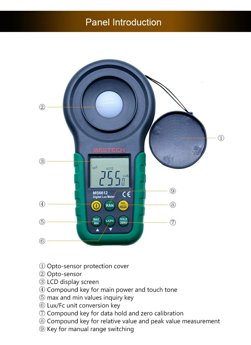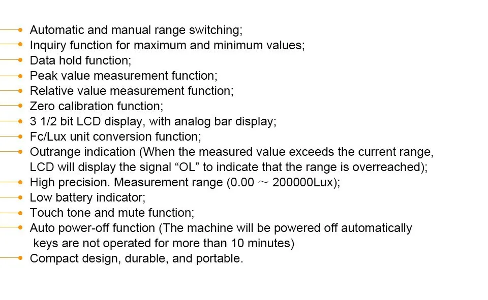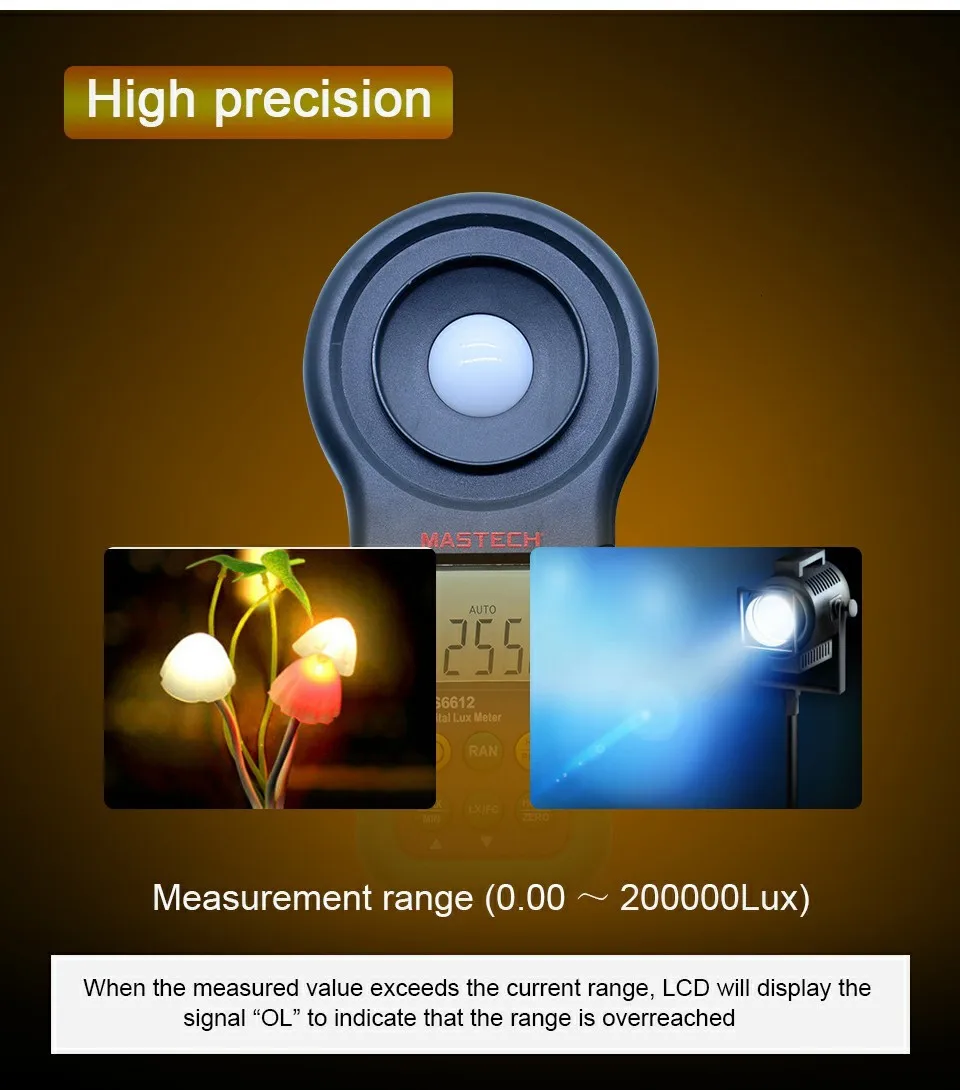 Диапазон измерения Люкс: 20/200/2000/20000/200000Lux (20/200/2000/20000Fc)