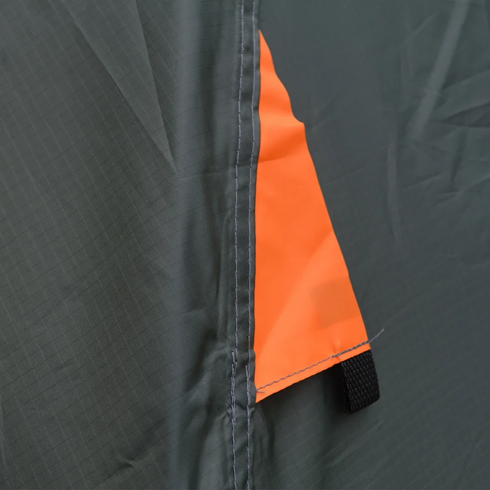 Outer tent: 210T glue Caulked waterproof polyester, Waterproof index: 2500-3000 mm. (it can even resist the heavy rain.)