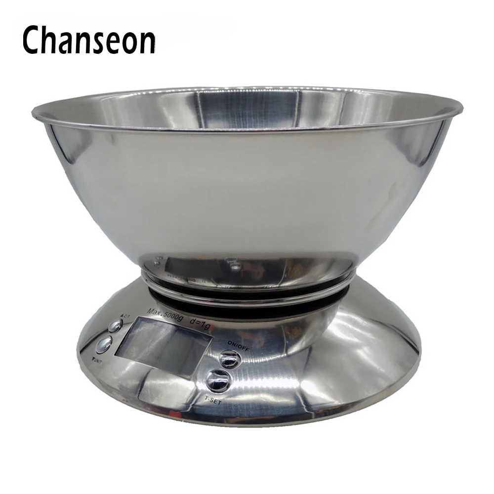 Электронные кухонные весы Chanseon, кухонные весы с чашей из нержавеющей стали, 5 кг, 1 г
