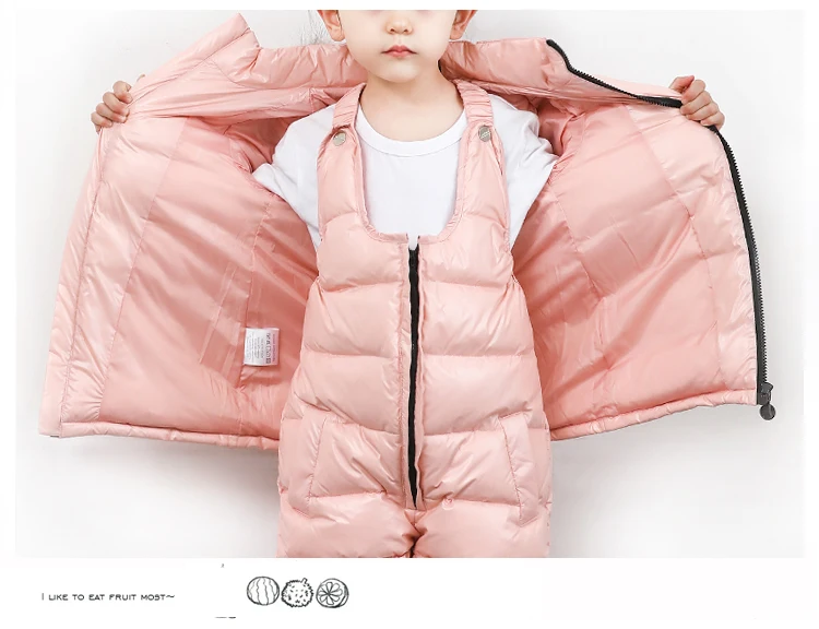 Зимний Детский пуховик длинный однотонный пуховик на молнии для мальчиков и девочек утепленная куртка + штаны одежда из двух предметов