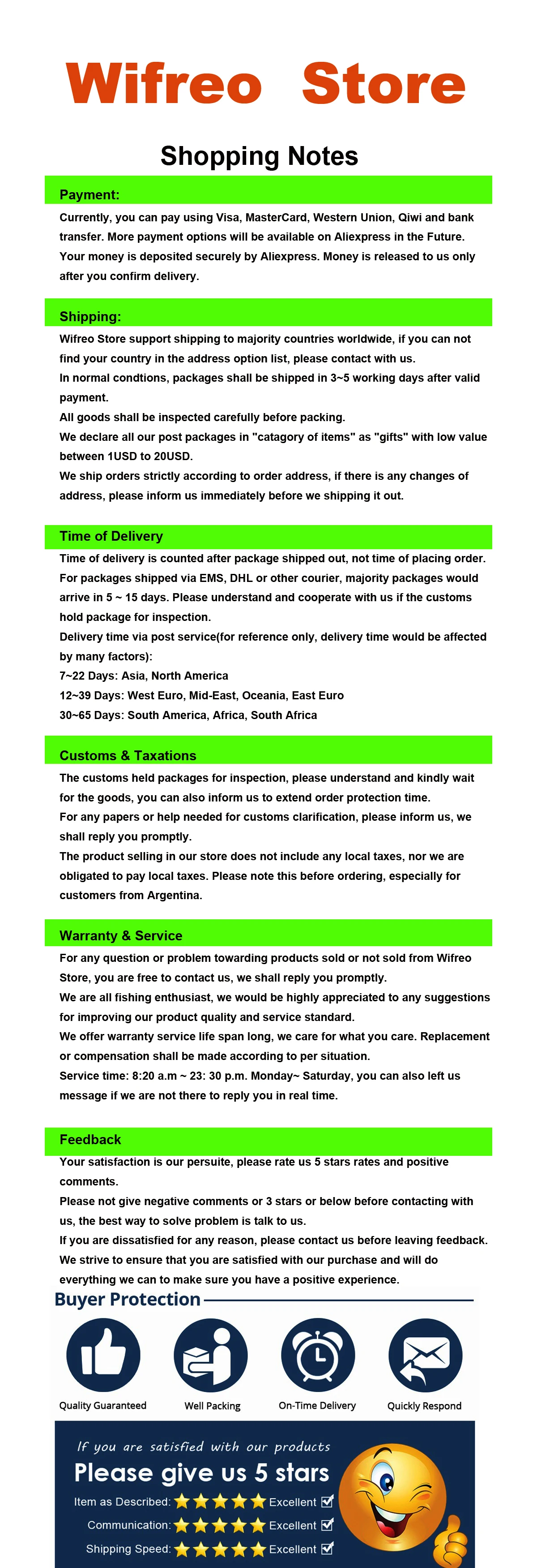 Магазина Wifreo store работает с 18.11.2012. его рейтинг составлет 96.31 баллов из 100. В избранное добавили 56130 покупателя. Средний рейтинг торваров продавца 4.8 в продаже представленно 949 наименований товаров, успешно доставлено 89548 заказов. 29692 покупателей оставили отзывы о продавце.