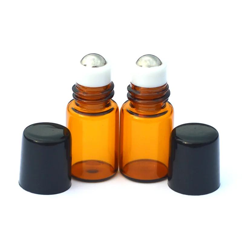 Стеклянные бутылочки с роликом, пустой аромат, парфюмерная бутылка эфирного масла, 2 мл, рулон, черная пластиковая бутылка для крышки