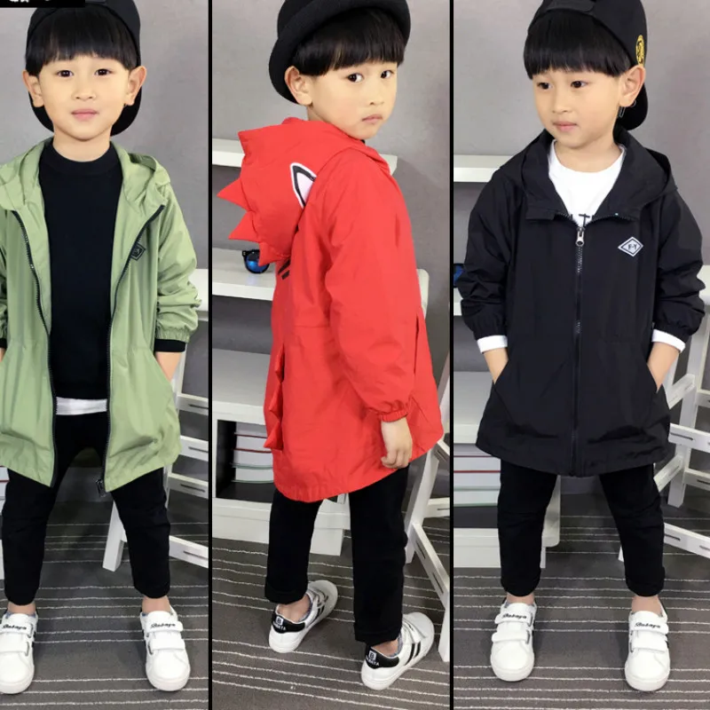 Новинка; Сезон осень-весна; Красивые куртки с динозаврами для маленьких мальчиков; Модная трендовая ветровка с капюшоном