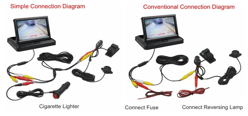 Once your car is equipped this compact and fashionable video reverse system, the world behind your car will not trouble you anymore! What's more, you can enjoy video which comes from DVD etc thanks to its 2 video inputs.