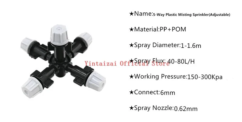 10 шт 5 способ аэрозольный распылитель с 1/4 дюйма Antidrip разъем парниковых туман разбрызгиватель для полива и орошения микро капельного полива M402C