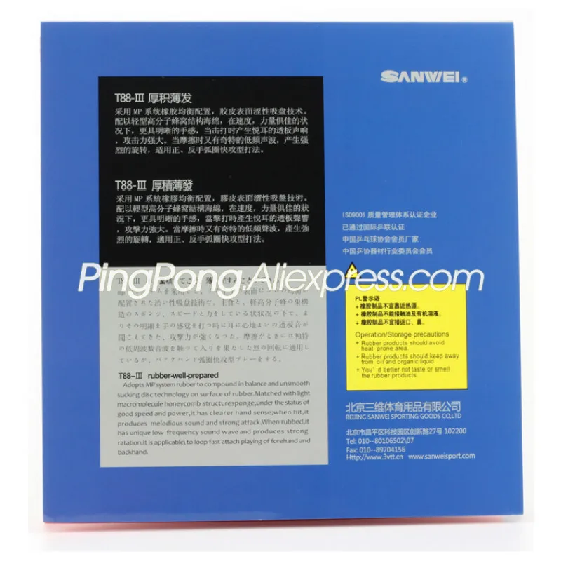 Каучук для настольного тенниса SANWEI T88 III (T88-3), (полулипкий, петля) с губкой, прыщи в пинг-понге -T88-3 использует систему MP резины для того чтобы смешать в равновесии и шероховатая поверхность присасывательный диск технологии на поверхности резины. Светильник, сочетающийся с макромолекулярной сотовой губкой, со статусом хорошей скорости и мощности, имеет более четкую чувствительность рук; Когда он работает, он производит мелодичный звук и сильную атаку. В тех случаях, когда rubbde, Имеет уникальную низкую частоту звуковой волны и производит сильное вращение. -Подходит для быстрой игры, чтобы прикрепить мяч и заднюю руку. Скорость:10,3 Спина:10 Толщина:2,1