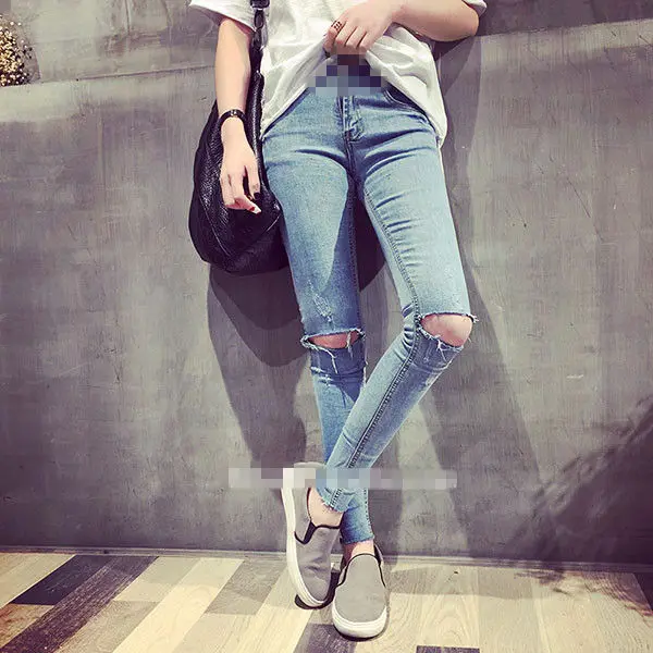 2017 Summer Light Blue Hole Denim Maternity Jeans Pants Matenrity Clothes for Pregnant Women Pregnancy Belly Pencil Trousers