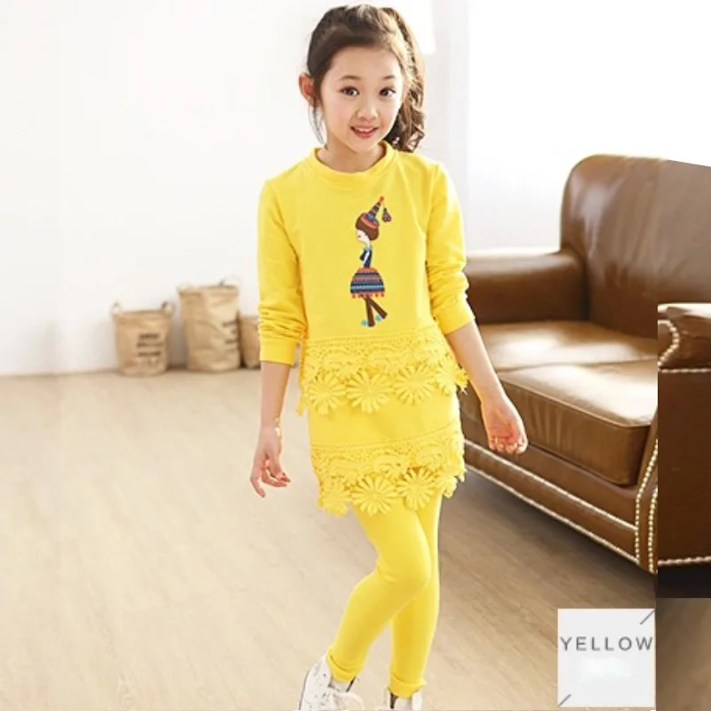 От 4 до 10 лет Одежда для девочек; Сезон весна-осень; Комплект из двух предметов; Свитер с вышивкой и рисунком; Куртка + штаны; Модная качественная детская одежда