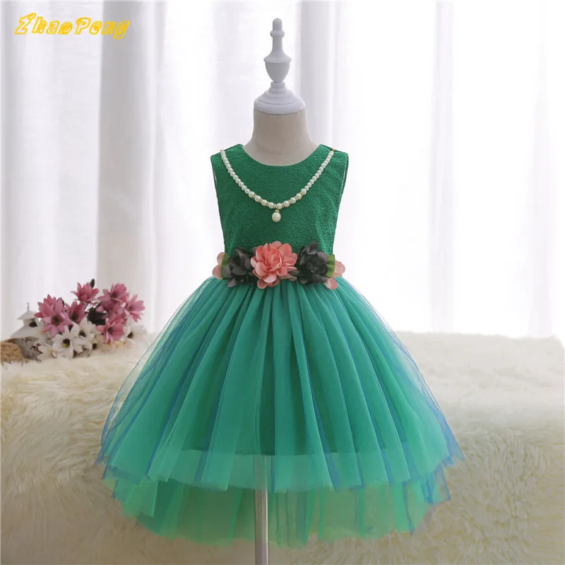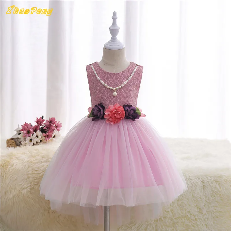 Платье принцессы для маленьких девочек на свадьбу с ласточкиным хвостом; кружевное платье без рукавов с цветами и цепочкой с бантом; детская одежда; платье для девочек