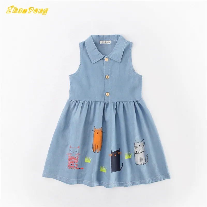 Летнее Ковбойское платье для девочек; рубашка без рукавов с воротником и рисунком кошки; платье для маленьких девочек; одежда для отдыха и вечеринок; От 3 до 10 лет
